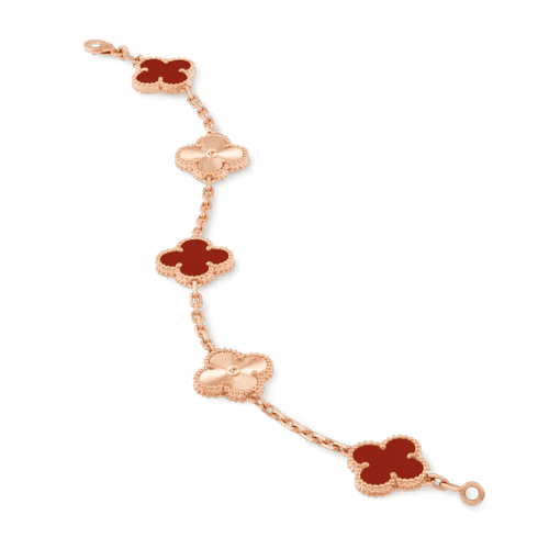 Brazalete Vintage Alhambra, Color Oro Rosa, Cornalina, 5 Motivos 🍀