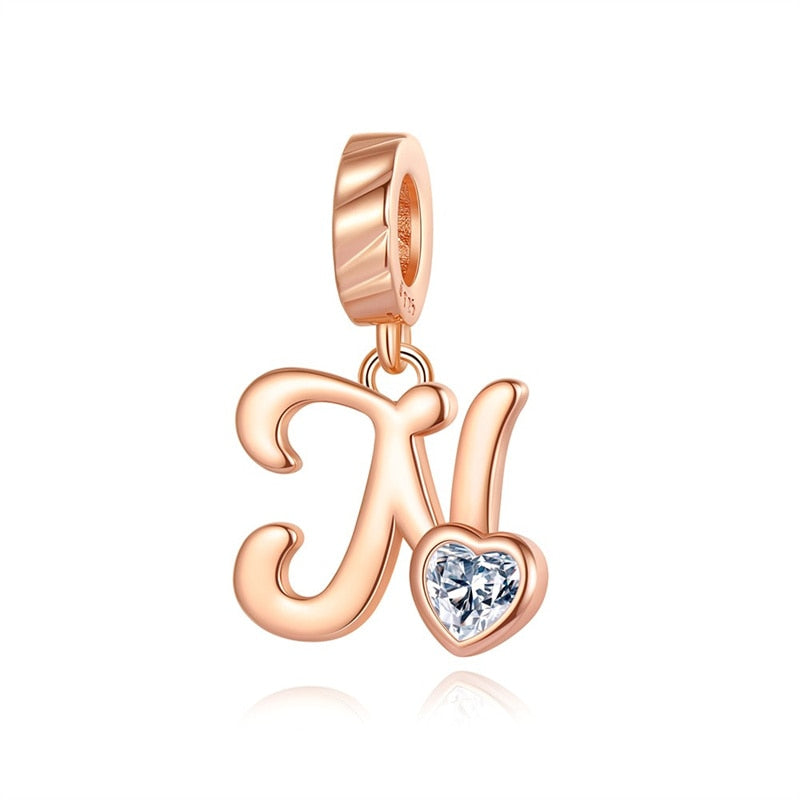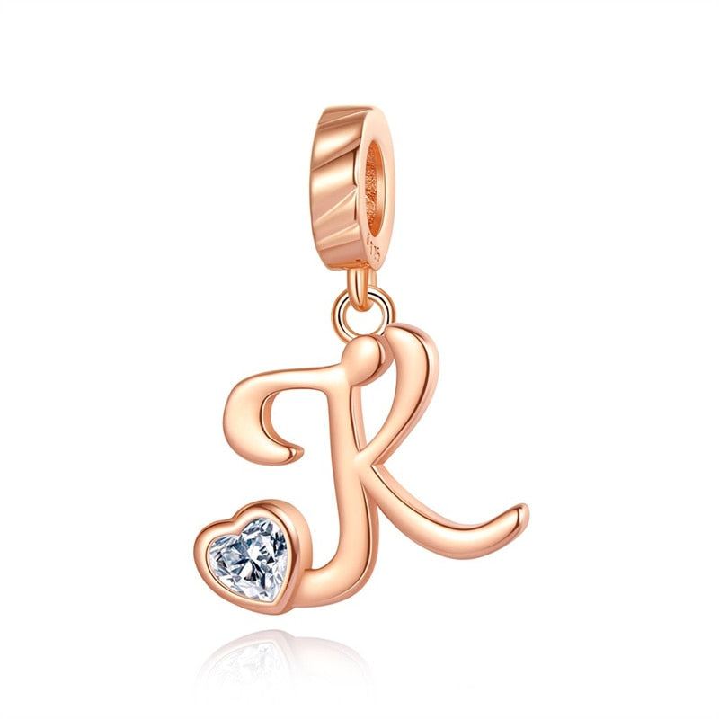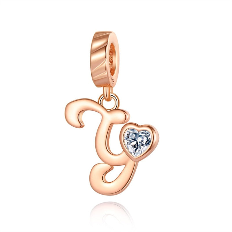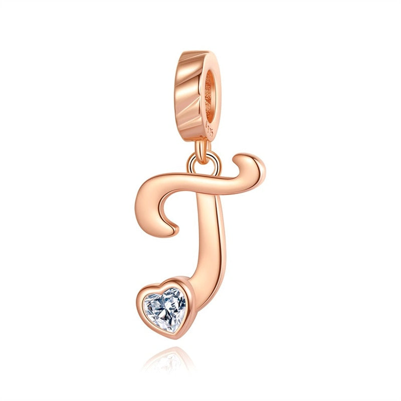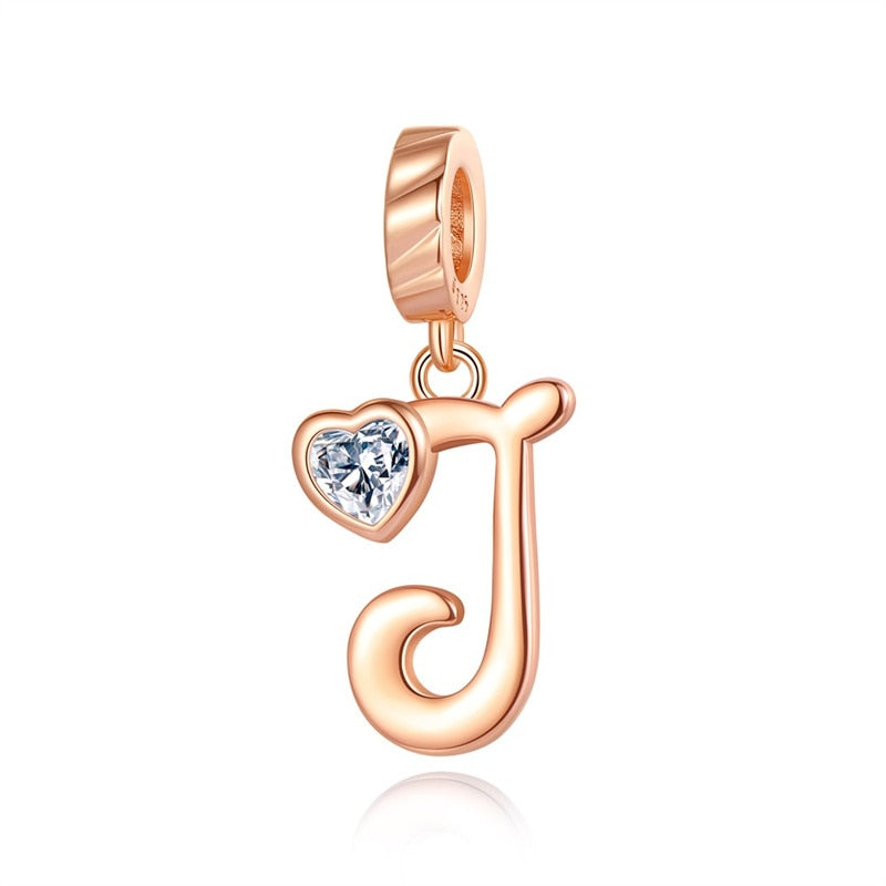 Charms Alfabeto A-Z Dorado Con Corazón Con Brillo