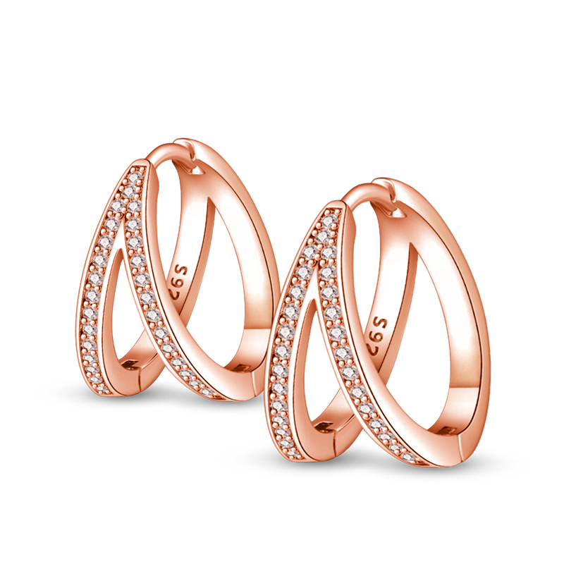 Pendientes De Aro Doble Vuelta Plata / Oro Rosa