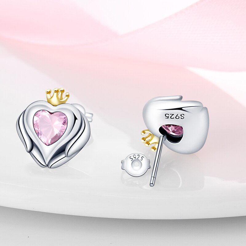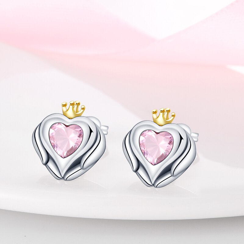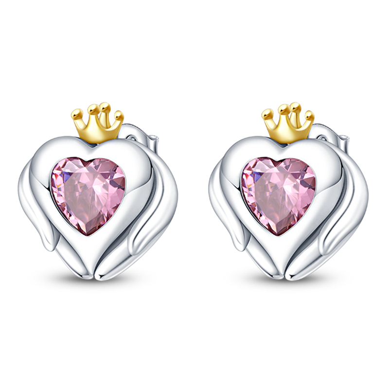 Pendientes De Botón Corazón Con Corona