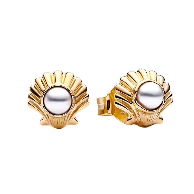 Pendientes De Botón De Concha Dorada