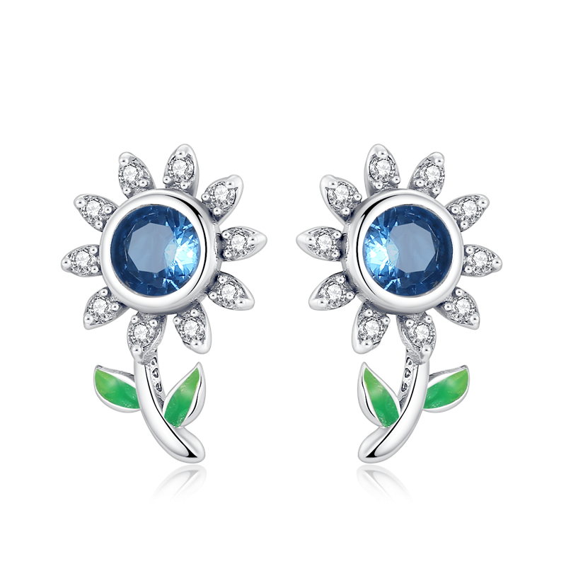 Pendientes De Botón Flor Azul